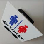 ・1,2個目デザイン: 男女共用マーク(ピクトグラム)+「TOILET」文字+「←」と「→」