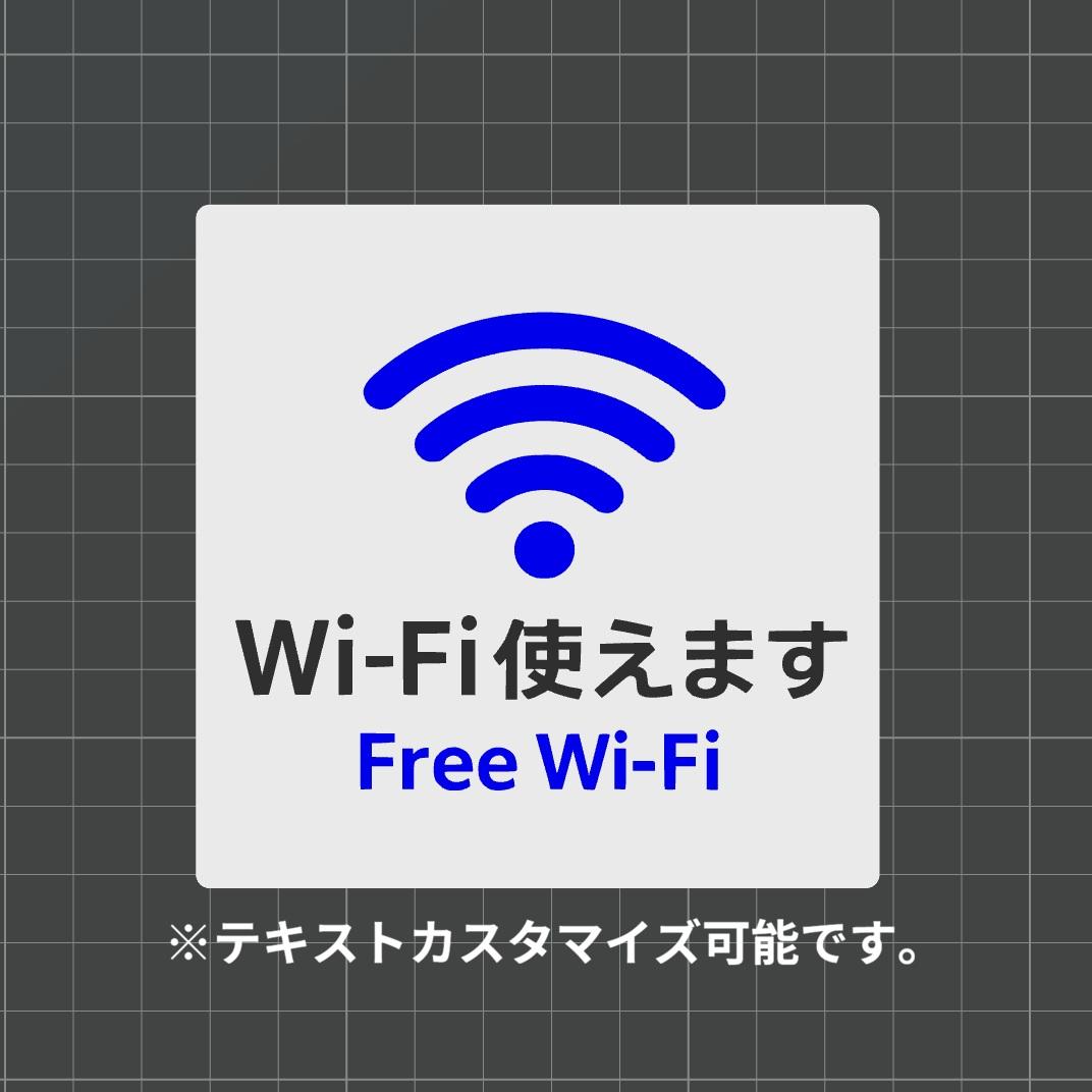 ・デザイン: Wi-Fi(ピクトグラム)+「Wi-Fi使えます」 + 「Free Wi-Fi」文字