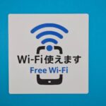・デザイン: Wi-Fi(ピクトグラム)+ 携帯(絵)+「Wi-Fi使えます」 + 「Free Wi-Fi」文字