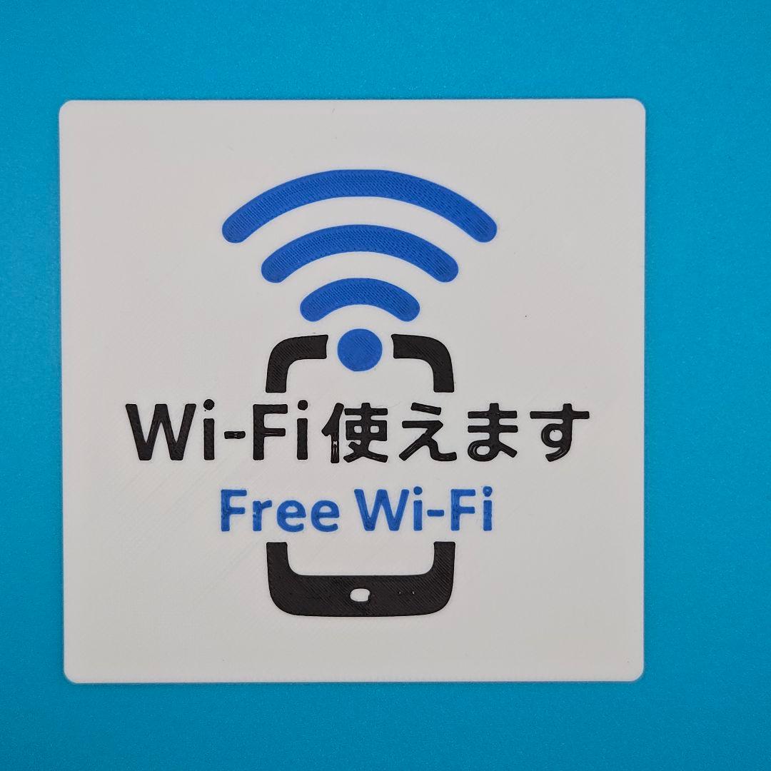 3Dプリンターで製作した、オリジナルの「Wi-Fi使えます」案内プレートです。